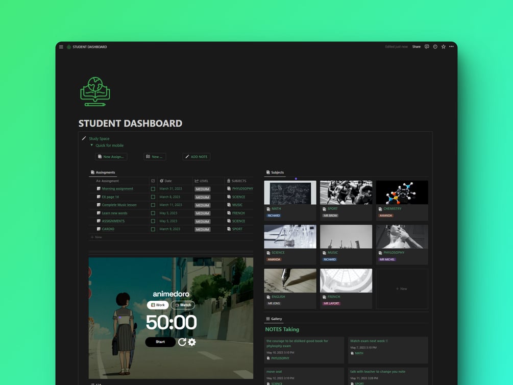 Overall, the Student Dashboard Notion template is a powerful tool that can help you stay on top of your academic workload and personal tasks. With its customizable features and intuitive design, this template can help you stay focused, productive, and organized throughout the academic year.